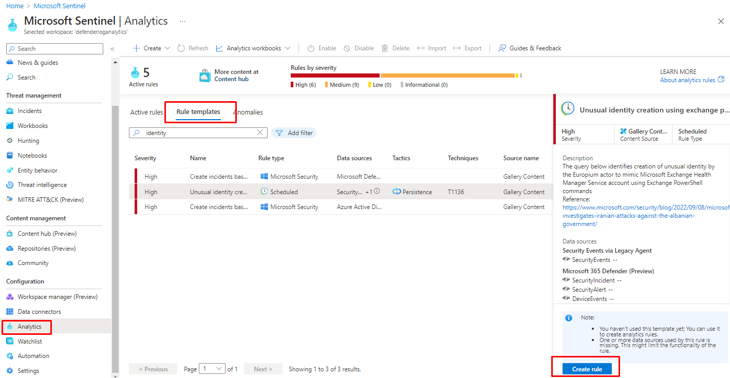 Create custom analytics rules to detect threats with Microsoft Sentinel