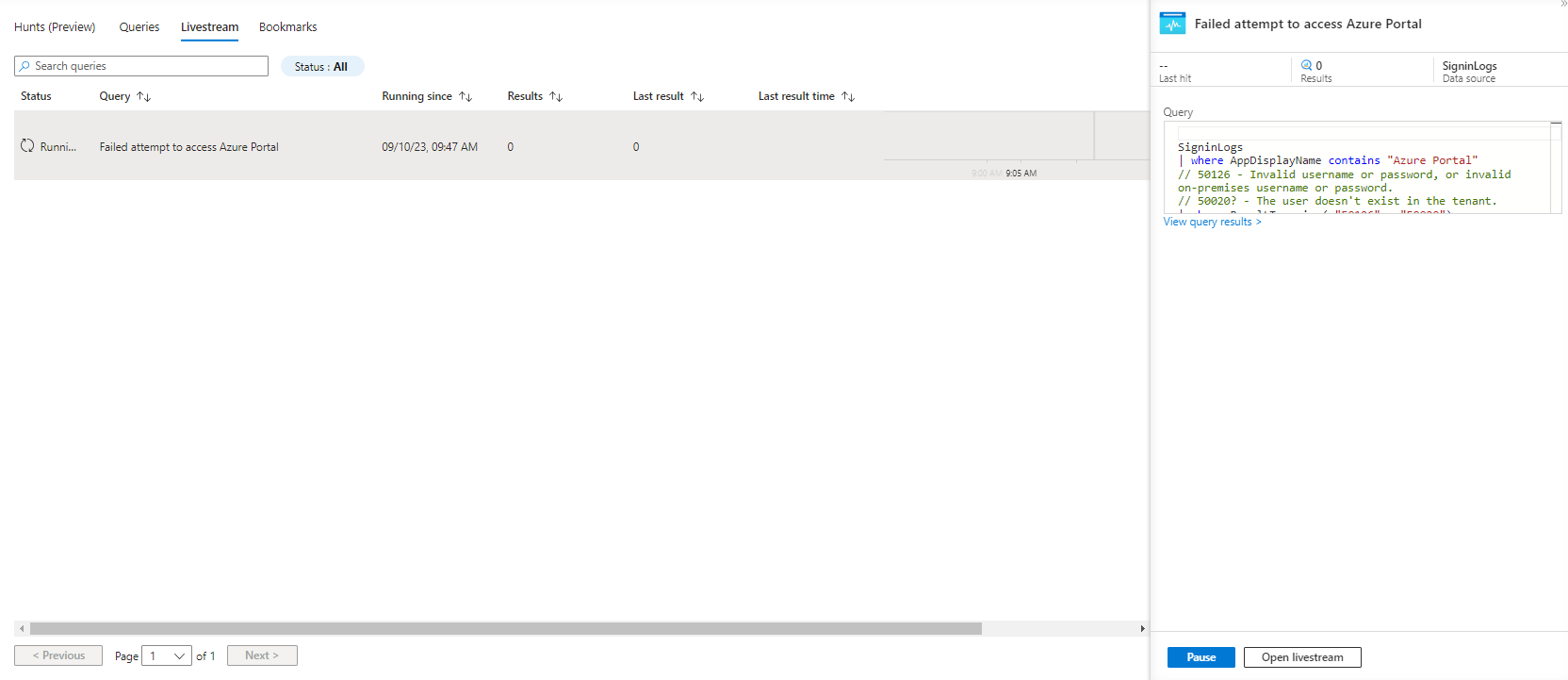 Use hunting Livestream in Microsoft Sentinel to detect threats