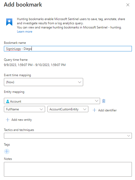You can Sentinel portal or use API calls to create or update a Bookmark