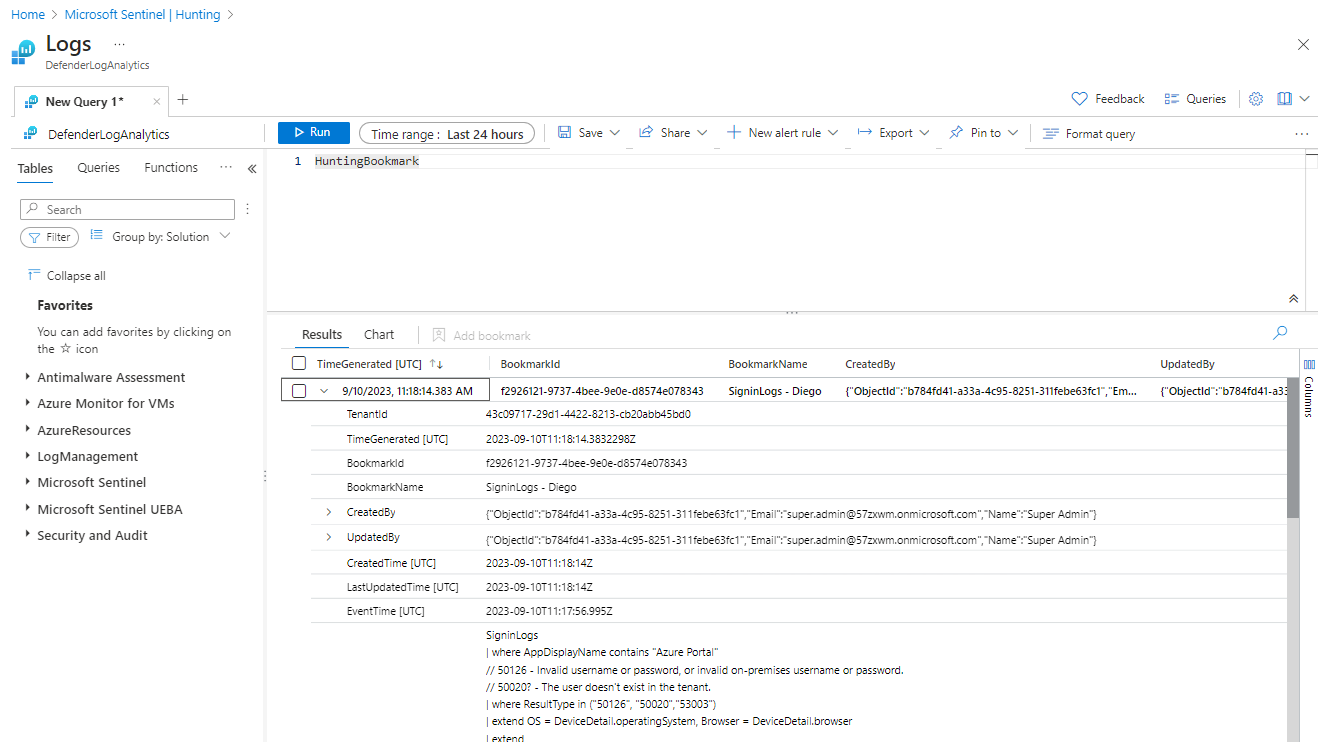 There may be occasions when you need to maintain track of the outcomes of previously executed queries while conducting investigations. It's possible that another user will be taking over the inquiry or that you must focus on another topic and will return to this one later. Additionally, you might need to save some outcomes as proof of an occurrence. In any case, you may store this information for later by using a bookmark.