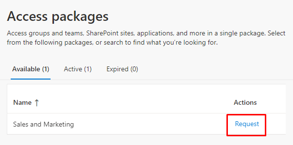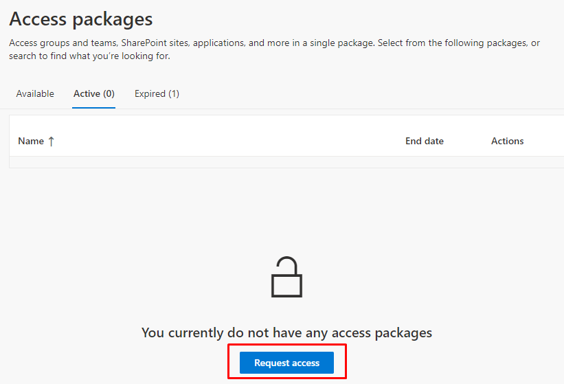 End-user goes to myaccess.microsoft.com or myapplication.microsoft.com and open Access packages. Then requests access.