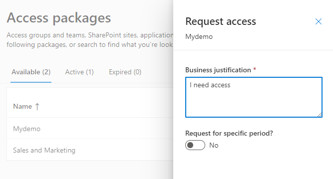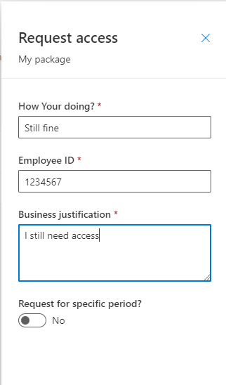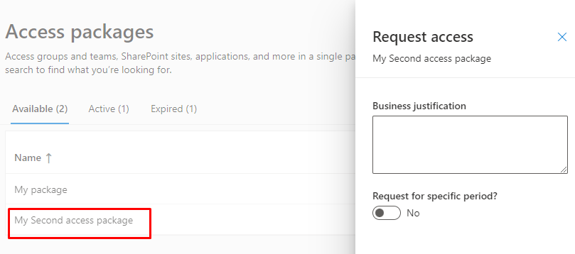 When you create Access package without requiring reason or approval, it will be easier for end-users