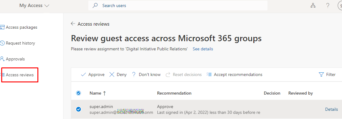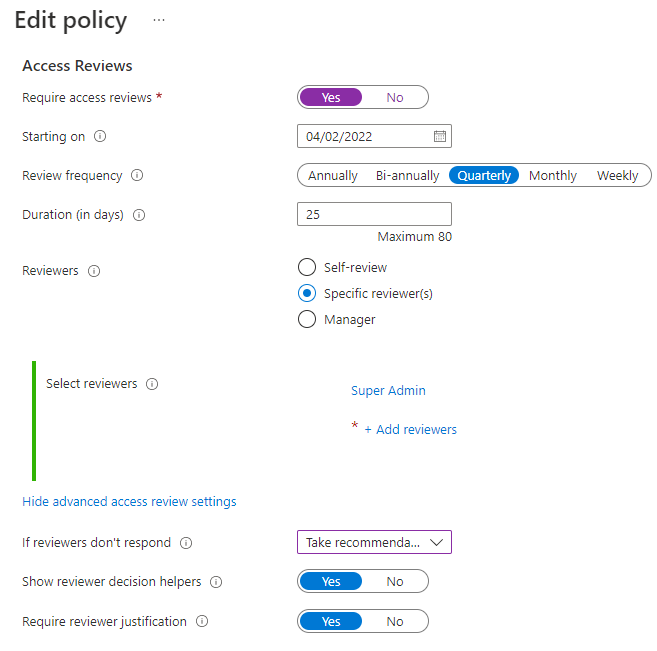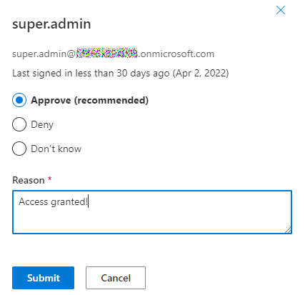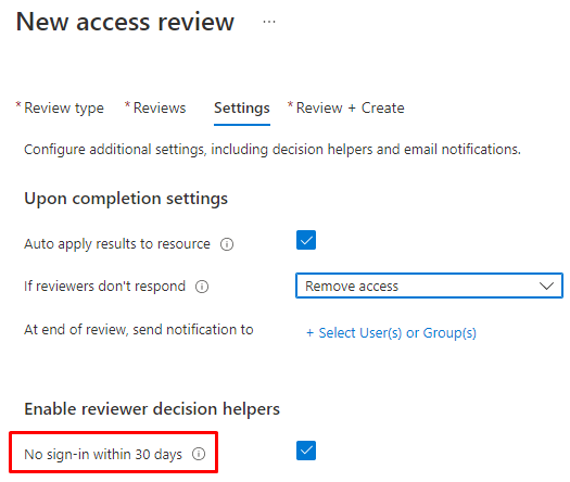 Really useful settings to help reviewer decision is the last sign-in. System recommends reviewers to deny users who have not signed-in within 30 days. Recommendation accounts for both interactive and non-interactive sign-ins.
