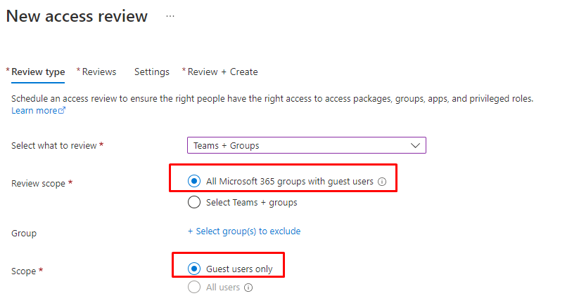 Note! B2B direct connect (Cross-tenant Access settings) users and teams in shared channels are included in access reviews. B2B direct connect users and teams are not supported in reviews of 'All Microsoft 365 groups with guest users'.
