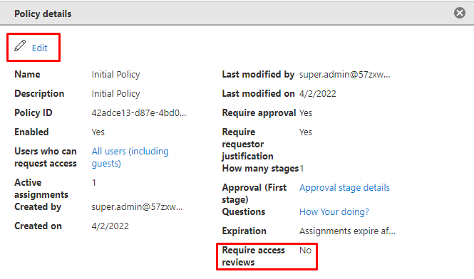 A valid Azure AD Premium P2, Enterprise Mobility + Security E5 paid, or trial license is required to use Azure AD access reviews.