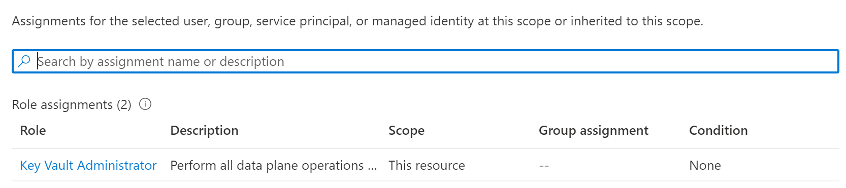 | Key & Secret Management | Keys: all operations Secrets: all operations | Key Vault Crypto Officer Key Vault Secrets Officer |