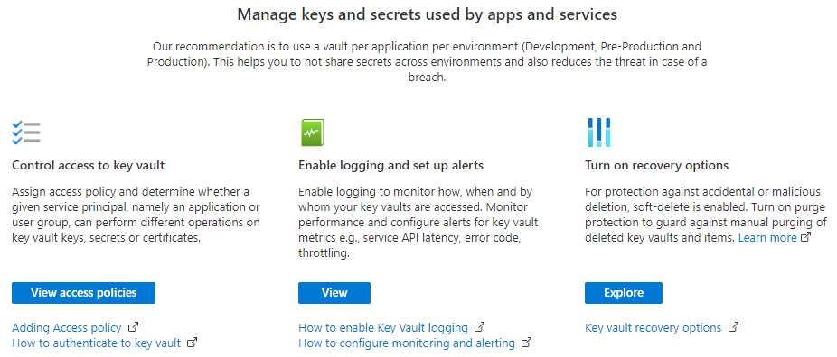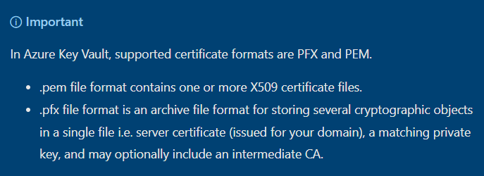 | Vaults | Software-protected and HSM-protected (with Premium SKU) | https://{vault-name}.vault.azure.net |