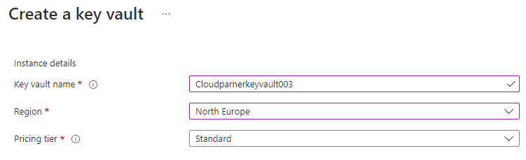 When you create a Key vault, you will the following options and Vault name must only contain alphanumeric characters and dashes and cannot start with a number.