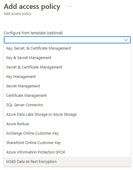 | Exchange Online Customer Key | Keys: get, list, wrap key, unwrap key | Key Vault Crypto Service Encryption User |