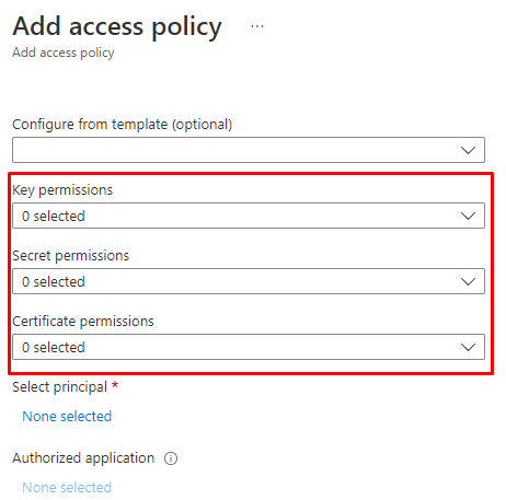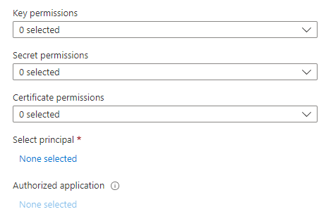 If you need to use or just trying out, you will see the following permissions available, you can set different permissions for Keys, Secret or certificate inside the Key vault as long as you remember that granularity isn't supported, you have to define the access policies to the Key vault at top level.