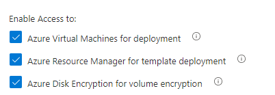 Virtual machine for deployment specifies whether Azure Virtual Machines are permitted to retrieve certificates stored as secrets from the key vault.