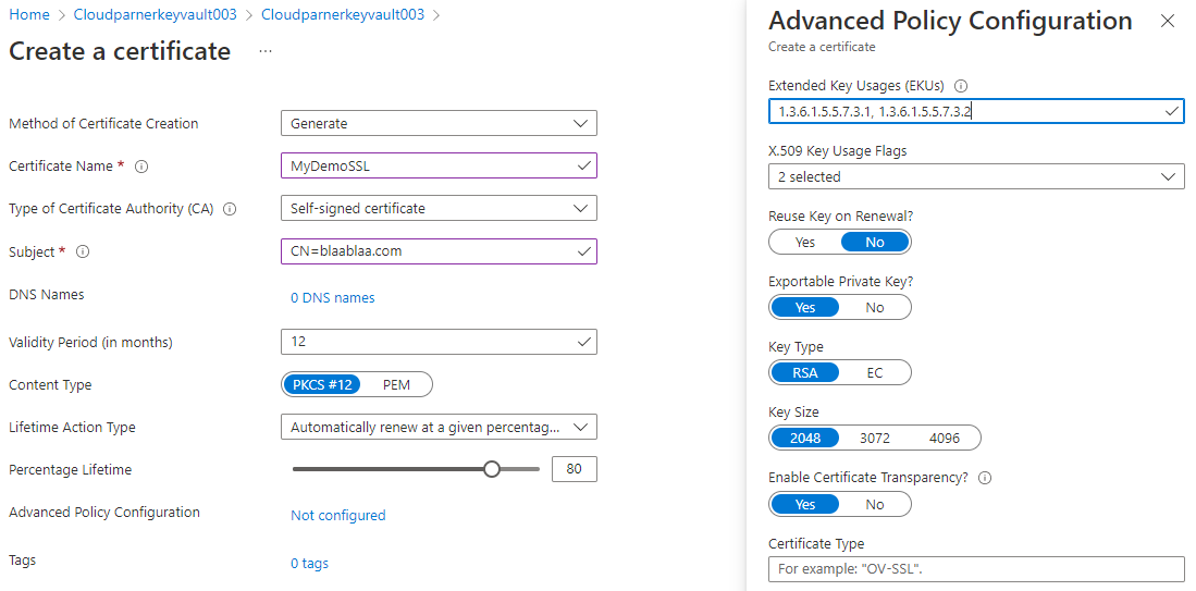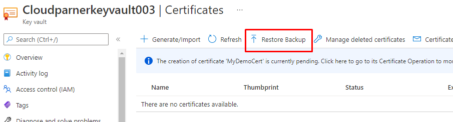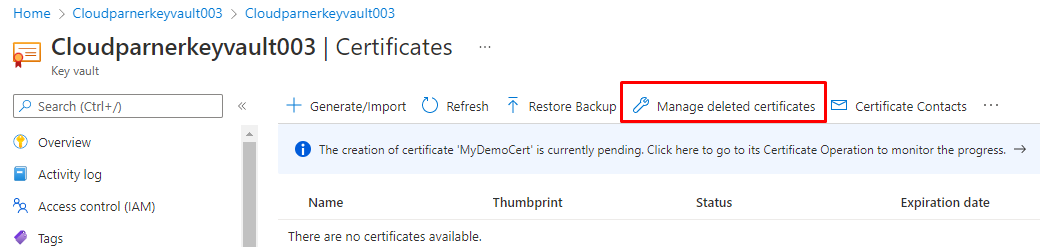 | Certificate Management | Certificates: all operations | Key Vault Certificates Officer |