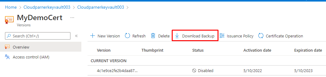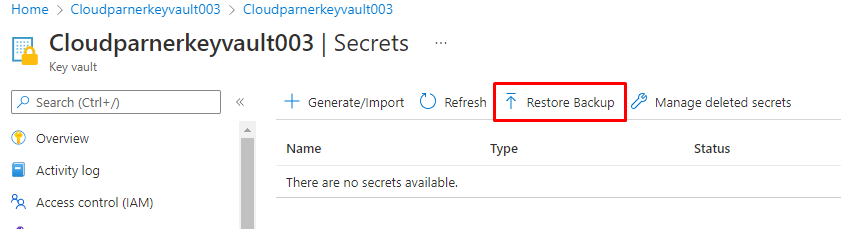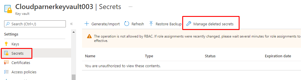 | Azure Backup | Keys: get, list, backup Secrets: get, list, backup | N/A Custom role required |