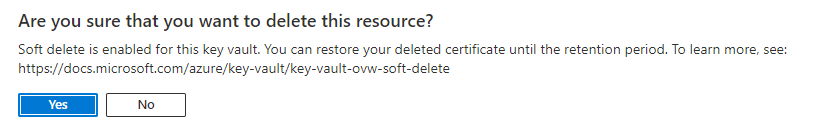 Soft delete protection will automatically be enabled on this key vault. This feature allows you to recover or permanently delete a key vault and secrets for the duration of the retention period. This protection applies to the key vault and the secrets stored within the key vault.