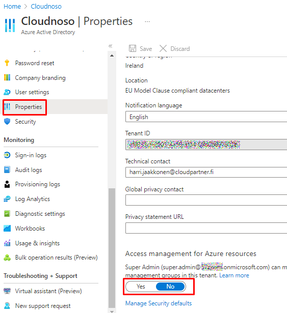 When you set the toggle to Yes, you are assigned the User Access Administrator role in Azure RBAC at root scope (/). This grants you permission to assign roles in all Azure subscriptions and management groups associated with this Azure AD directory. This toggle is only available to users who are assigned the Global Administrator role in Azure AD.