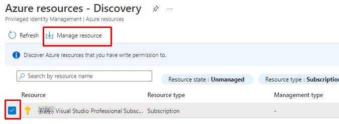 And you an go to PIM and choose Discover resources