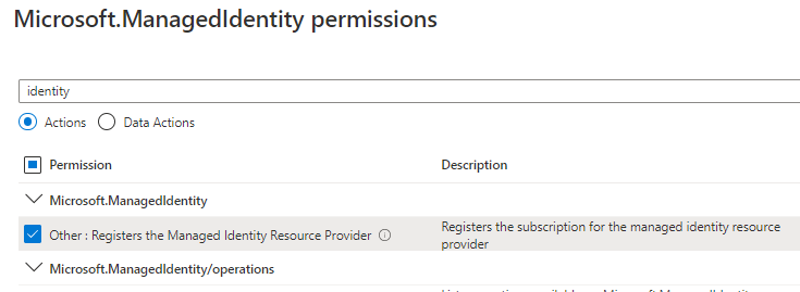 And add Microsoft.ManagedIdentity and permission to register Resource providers