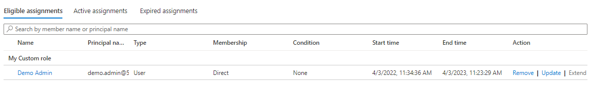 There are two types of assignment – eligible and active. If a user has been made eligible for a role, that means they can activate the role when they need to perform privileged tasks.