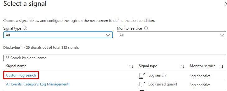 And choose Custom log search