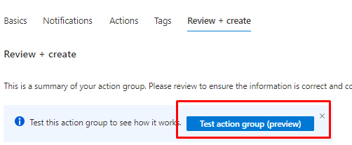 Now you can also test the action group created, excellent!
