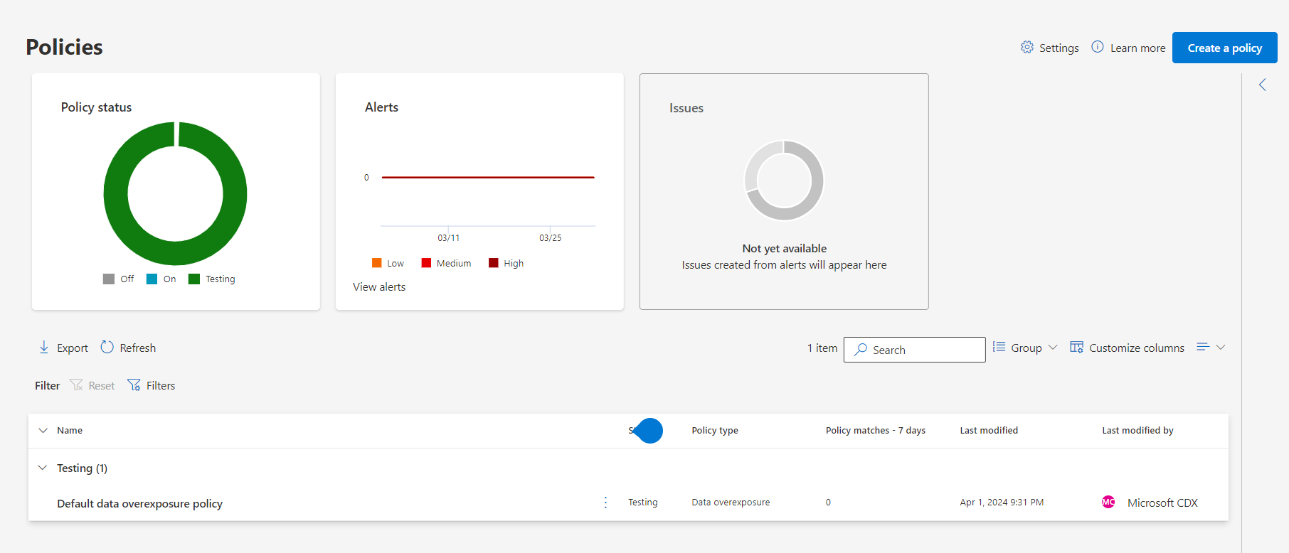 - Three policy types: Data Overexposure, Transfers, Minimization.