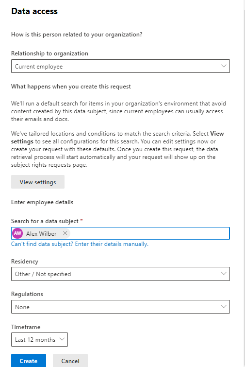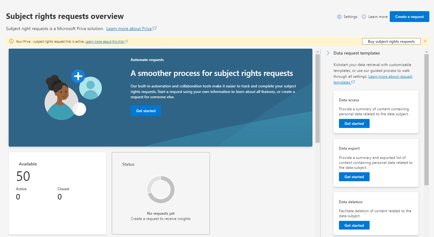 | Subject Rights Request Administrators | Members have full rights to create and manage subject rights requests, and can add approvers for requests. | Subject Rights Request Admin |