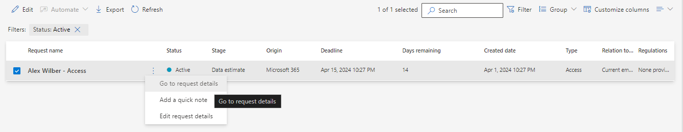 - Sort your request list by "Relation to Org" to see requests grouped by data subject relationship.