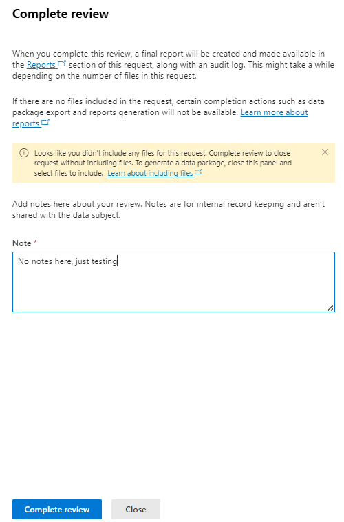 - Priva creates reports for the data subject (including the data package) and your organization's records (learn more about generating reports).