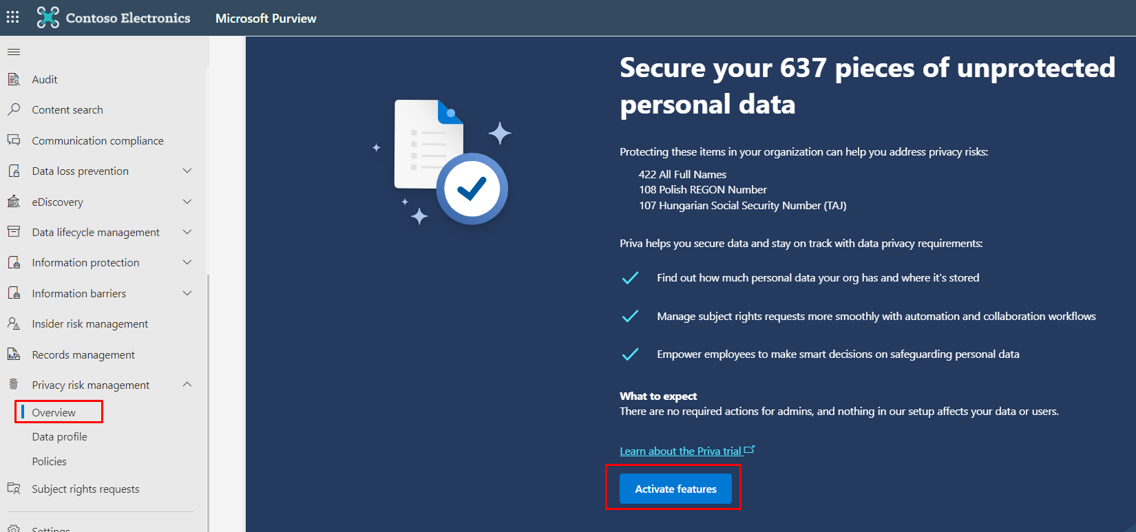If you don't Privacy Risk Management, you can enable the trial from the overview page
