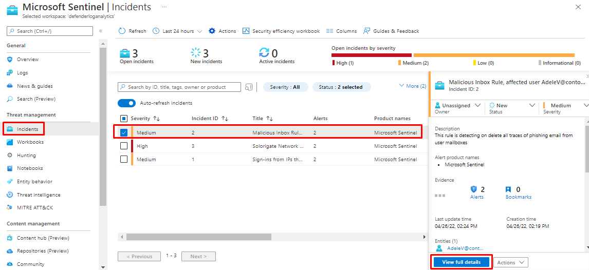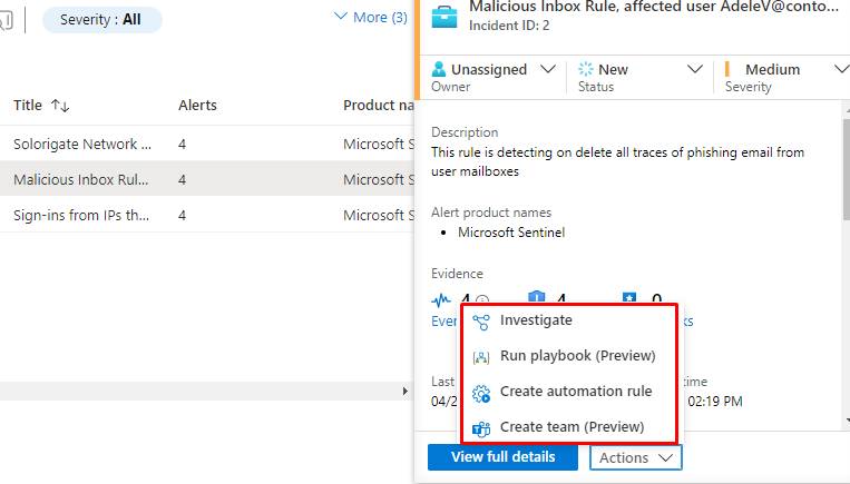 | Investigation for Microsoft Sentinel | Incidents in Microsoft Sentinel |