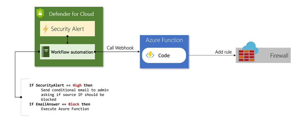 Security workflows can be created with a combination of Defender for cloud and Logic apps.