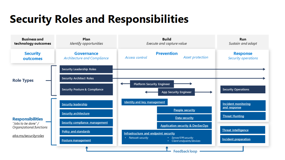 - Customer Security Stakeholders: The security functions at the customer organization who may be accountable, responsible, or consulted for the respective control. It may be different from organization to organization depending on your company’s security organization structure, and the roles and responsibilities you set up related to Azure security.