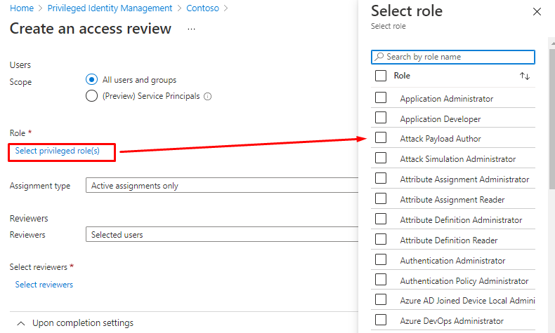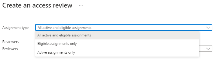 You can also select Assignment type and the option are All active and Eligible assignments, Eligible assignments only or Active assignments only.