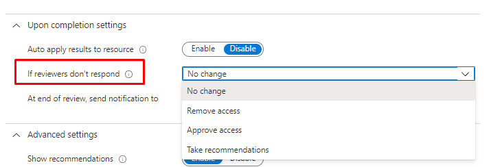 And Upon completion You can auto-apply the results to resources or disable. Also select what happens if the Reviewer specified don't respond.