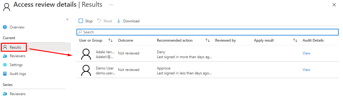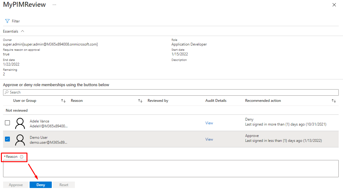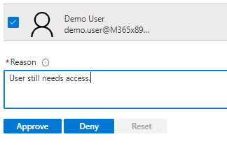 Show recommendation: If enabled, system recommends reviewers to deny users who have not signed-in within 30 days. Recommendation accounts for both interactive and non-interactive sign-ins.