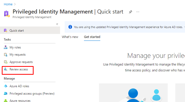 | Azure resource role | Specified reviewers Self-review | Azure AD PIM | Azure portal |