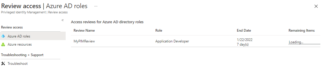 You will see Azure AD roles and resources. And the review that was assigned to You.