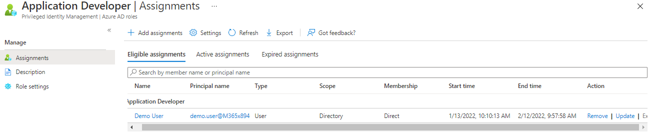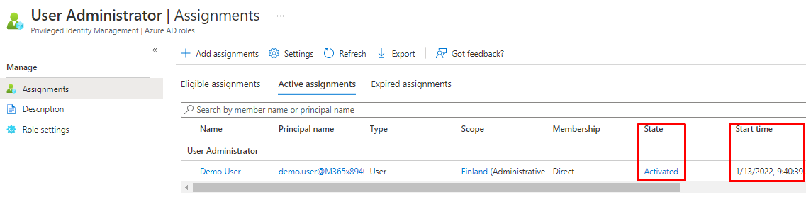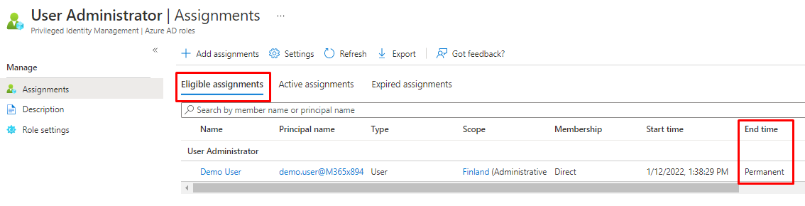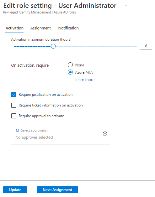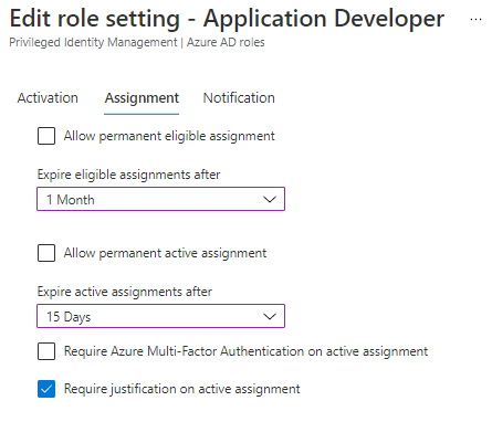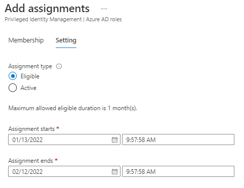 Choose is the assignment Eligible or Active and how long the role can be elevated.
