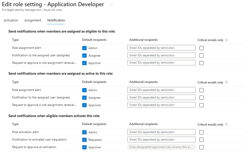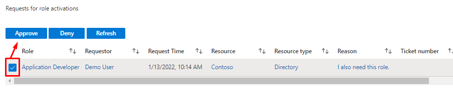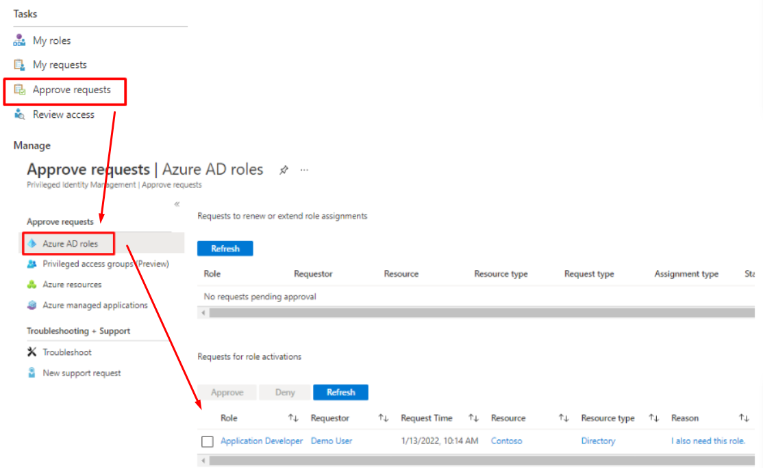 | Approve requests | Displays a list of requests to activate eligible roles by users in your directory that you are designated to approve. |