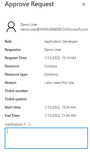 Give justification why You Approved the request. These will be logged to Audit logs.