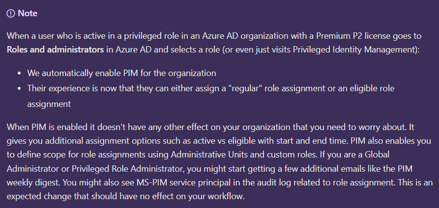 There is two different types for roles, Eligible and Active. Active is is given automatically and Eligible is requested when needed.