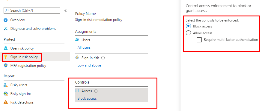 In the Sign-in risk page You can block access or allow access but require MFA again.