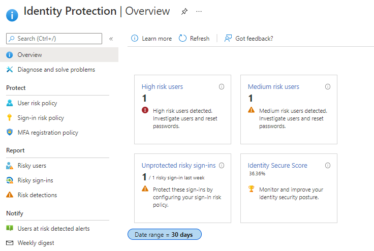 Azure AD Premium P1 also has reporting capabilities for Risky detections.