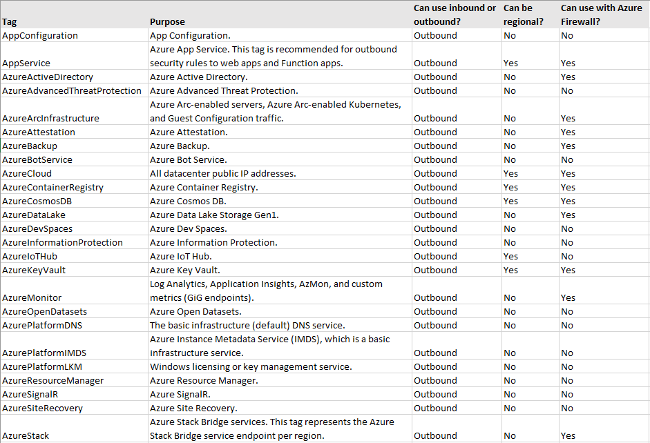 | Tag | Associated entity | 512 (name), 256 (value) | Case insensitive | Alphanumeric, spaces, and Unicode characters except for angle brackets, percent symbol, ampersand, forward or back slashes, question mark, or period | key : value | Department : Central IT ☺ |