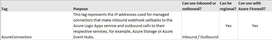 Supported Inbound tags