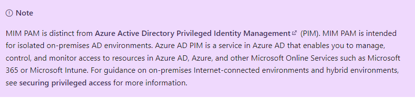 PAM = on-premises and integrated with MIM