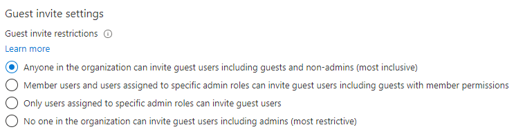 This setting controls who can invite guests to your directory to collaborate on resources secured by your Azure AD, such as SharePoint sites or Azure resources.