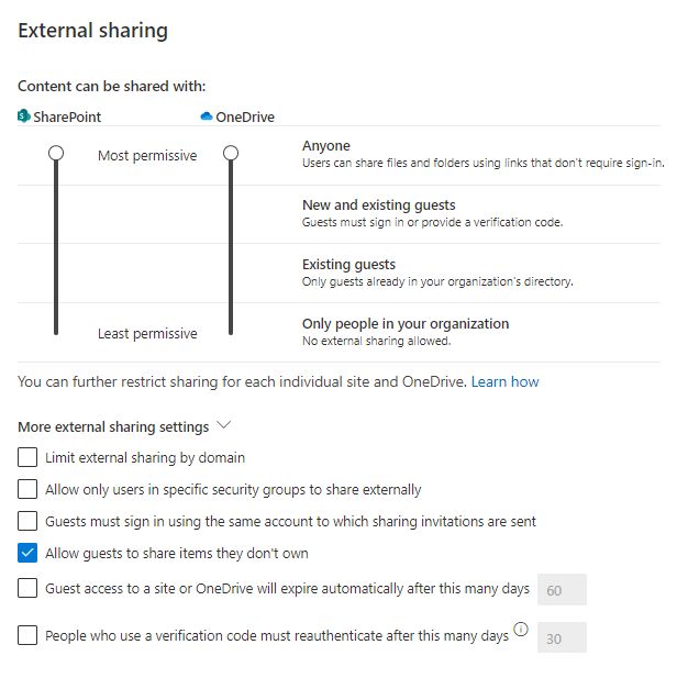 And like said in the last sections of this series, these settings affect the whole tenant and will change some of the SharePoint / OneDrive sharing settings also.