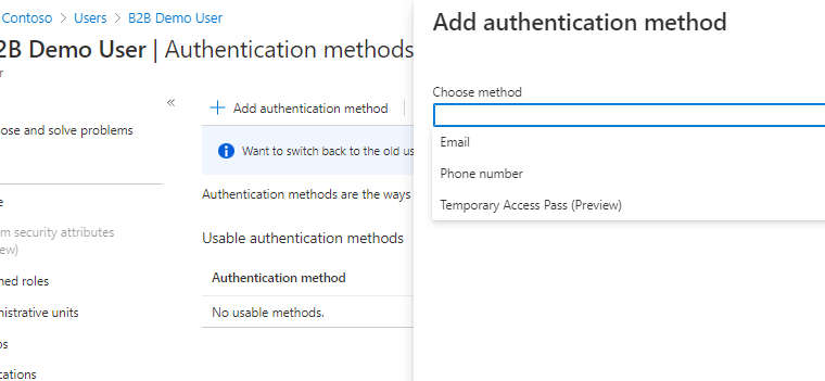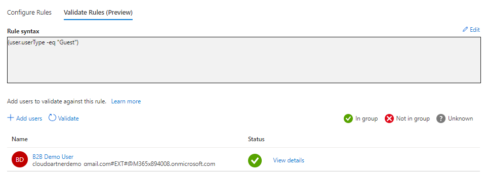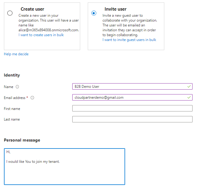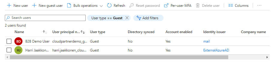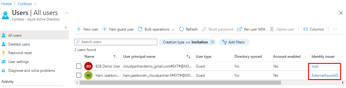 Note the different user types. Mail is a user with Email account and ExternalAzureAD for a user that has External Azure AD account.