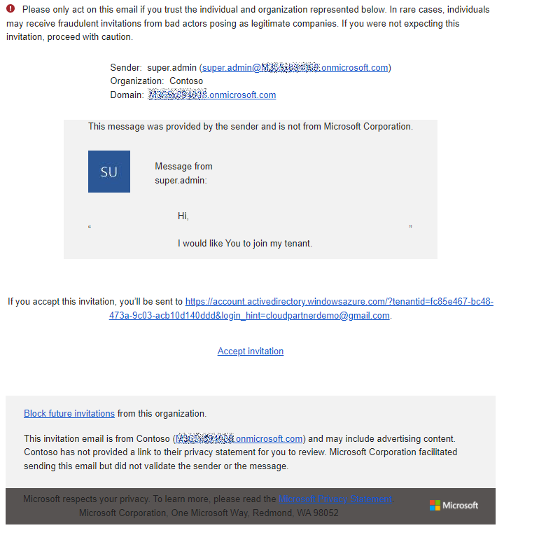 Once they hit "Accept Invitation" they will be redirected to the tenant and sent OTP back to their email.